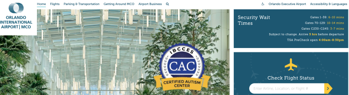Many airports also share the current TSA wait times on their website. For example, the security wait times are posted on the homepage of the Orlando Airport website.
