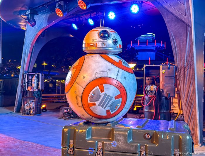 Another big draw for Star Wars Nite is the character experiences. We didn’t get the chance to see everyone, but we spotted Luke Skywalker in Galaxy’s Edge and stopped to chat.