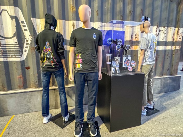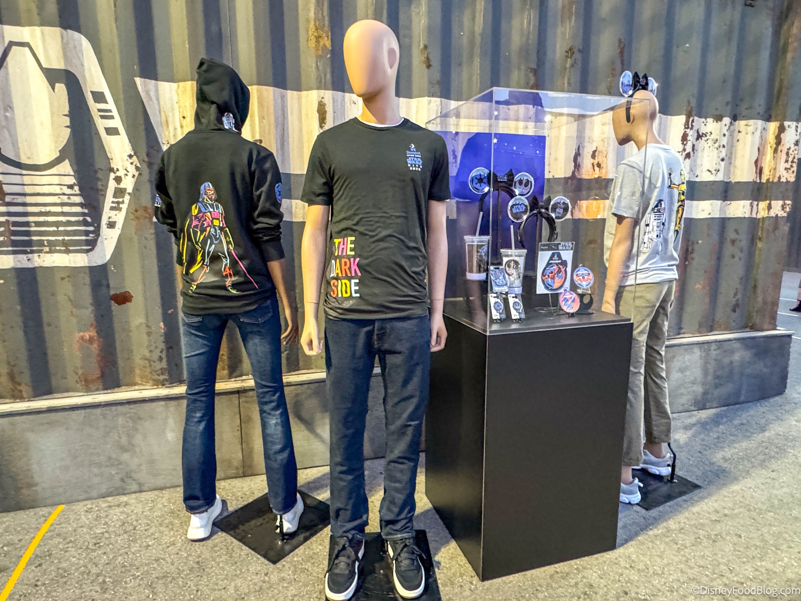They even have exclusive merchandise for Star Wars Nite! You’ll find this collection available at a few stores around the park during the event. There’s apparel, Minnie ears, pins, cups, and other exclusive collectibles.