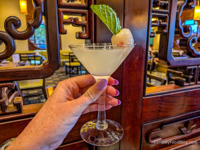 While this martini was pretty solid, it wasn’t the best Lychee Martini we’ve had in Disney World. Personally, we think the best one can be found over at Morimoto Asia in Disney Springs. We felt there wasn’t as much lychee flavor here, and instead, it was masked by the sweetness from the Vermouth.