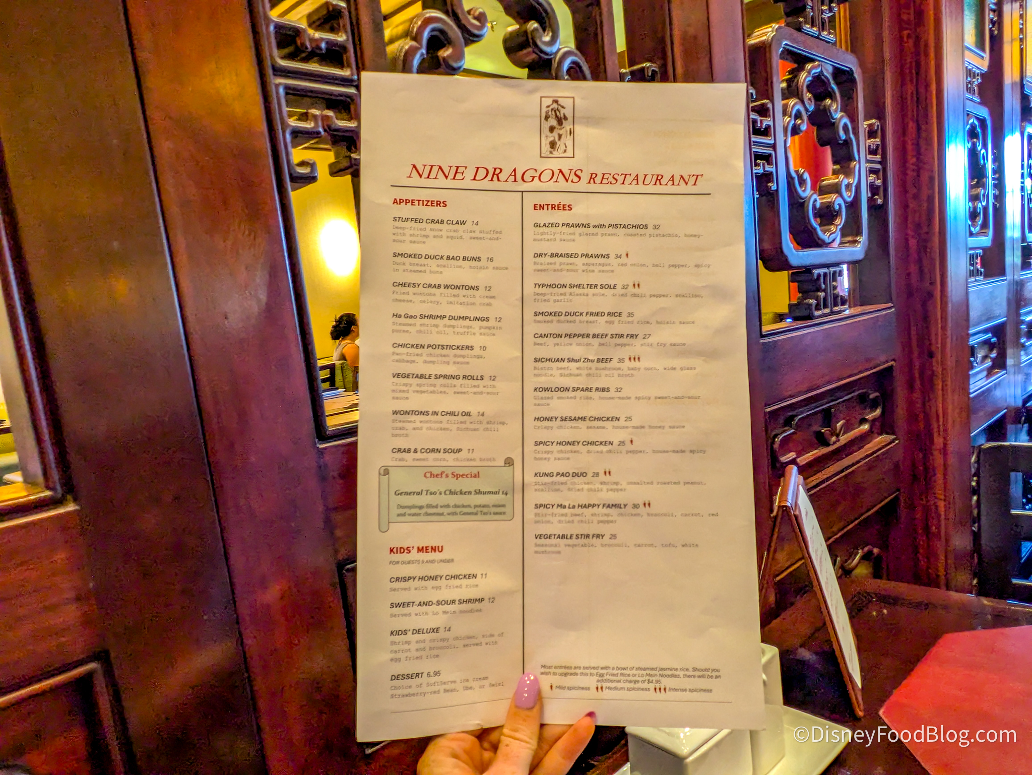 Just like many other spots in Disney World, we feel it’s very important to look at the menu before you decide where to dine on vacation so you know that you and your party will enjoy what’s being served. With so many choices in EPCOT, you’re bound to find something that will appease everyone on the trip — if that happens to be Nine Dragons, we think it’s a good option to consider!