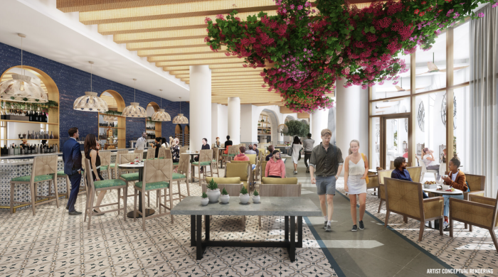 Flora Taverna is a full-service restaurant serving breakfast, lunch, and dinner. Breakfast is a buffet, but lunch and dinner offer a full table service dining experience with a menu boasting “Mediterranean comfort foods.” Flora Taverna features an open kitchen, live cooking, a pizza oven, open grills, and a gyros station. It also has amazing views of Celestial Park.