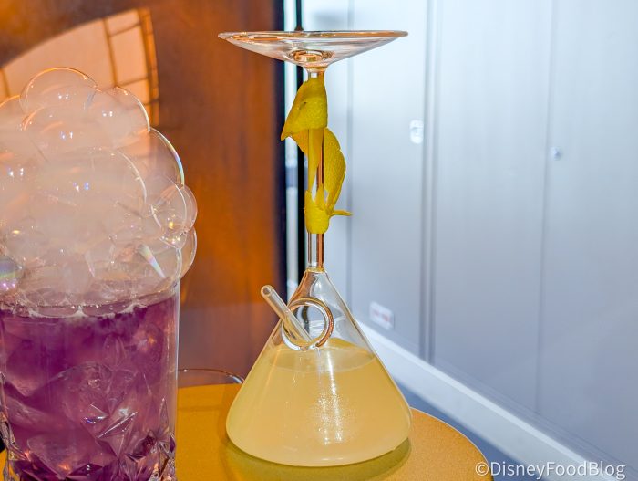 While the lounge isn’t available to explore yet, we were able to get a look at a few of the drinks you’ll be able to order here. This looker is called the Circle of the Cosmos and is served in an upside down martini glass (which ironically is a non-alcoholic drink) which we found to be tart but not unpleasant — almost like a ginger lemonade…