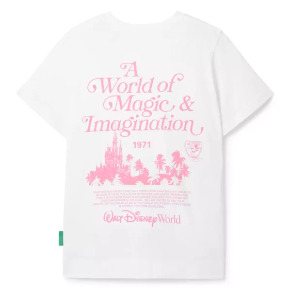 We’re going back to 1971 with this Walt Disney World ”A World of Magic & Imagination” T-Shirt. This pretty pink and white tee has the iconic Disney ‘D’ embroidered on the front. The back is filled with wonder, with a beautiful graphic design of Cinderella Castle that pays homage to Disney World’s opening year. We’re definitely going to be adding this to the wardrobe!