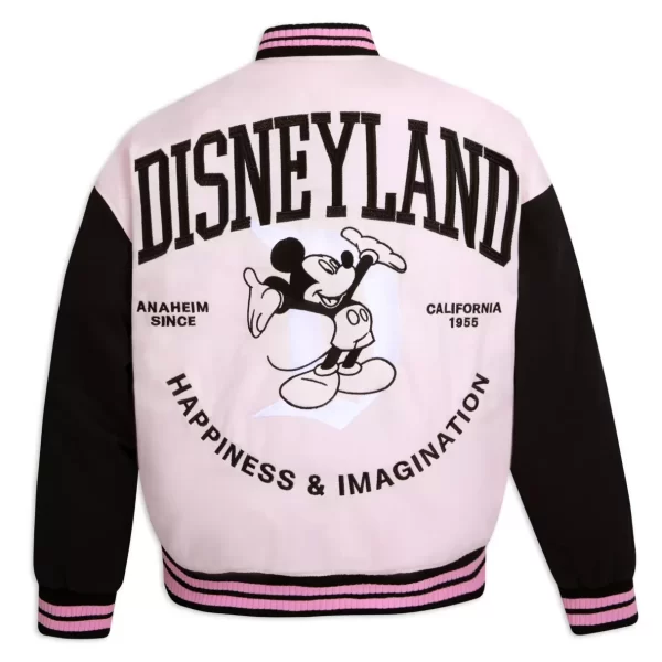 Where do we even start with this Disneyland Varsity Jacket?! This is the perfect piece to make a statement at the Park! It’s designed as a classic varsity jacket look and has so much going on for it to really pop. The iconic Disneyland ‘D’ is embroidered on the front in white. The back displays Mickey Mouse and the words “Happiness & Imagination”. This is perfect for your next Disneyland trip!