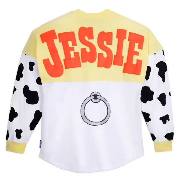 Represent the fan-favorite cowgirl with this Adult Jessie Spirit Jersey! It looks exactly like her top from the movie, with the cow-print sleeves, the buttons at the front of the jersey, and the pull-string at the back! You’ll find her name printed on the top part of the backside of the jersey as well. We love the fun design and style!
