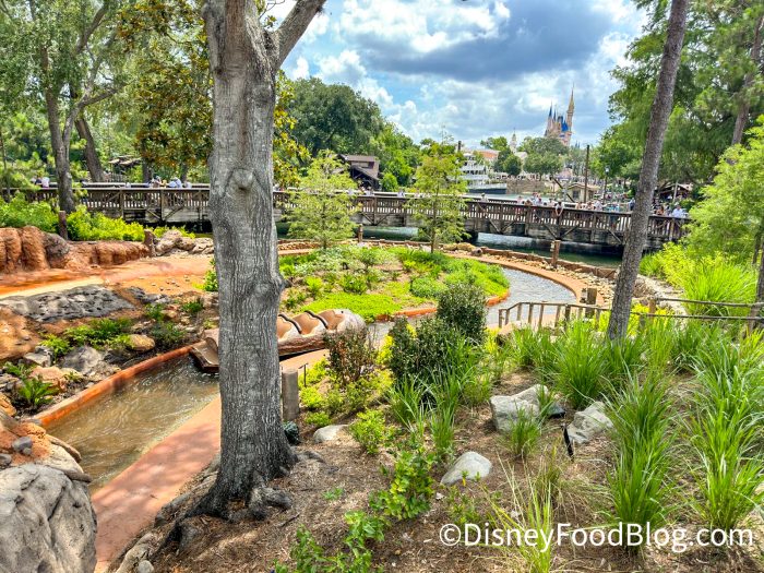 This bridge goes over part of the water for Tiana’s Bayou Adventure and is located near the Frontierland popcorn cart. Sure, you may not be able to see the castle projections from this far back, but this is DEFINITELY a calmer and less crowded place to enjoy the colorful “crash boom BANG” happening up in the sky.