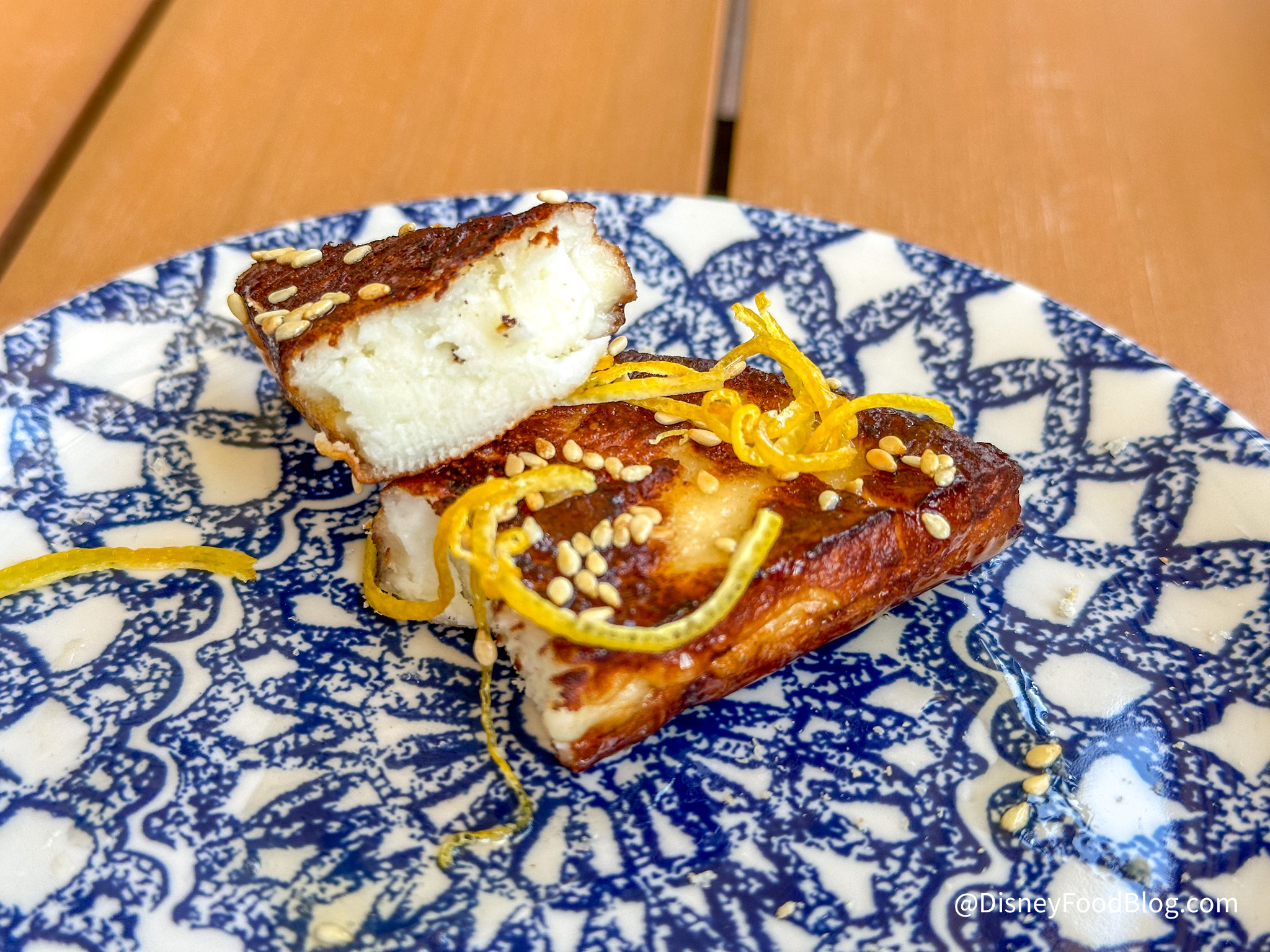 For our last starter, we tried the Saganaki. This was $17 and had pan-seared Halloumi cheese, honey, lemon peel, and toasted sesame.