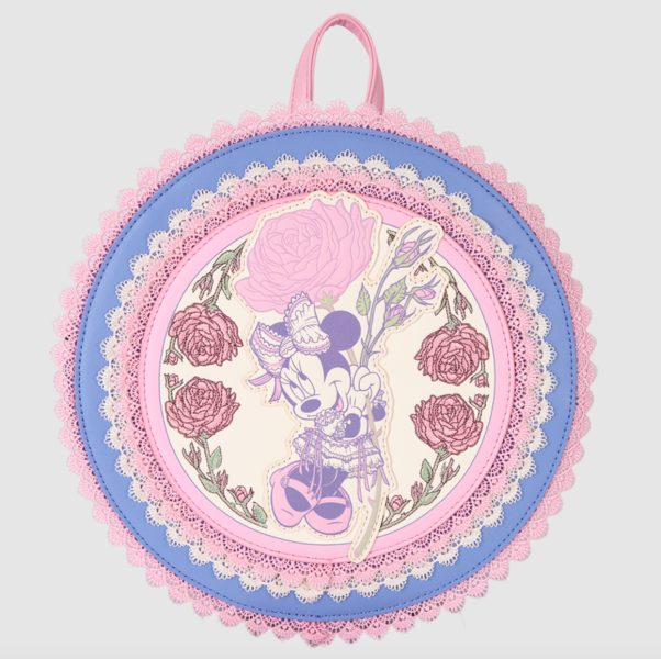 OK, we’re starting strong with this new Minnie Mouse mini backpack. Look at the lace detail! Look at the bouquet of flowers! We LOVE the Minnie appliqué, too, where Minnie is seen all dressed up for spring. Check this one out SOON before it sells out!