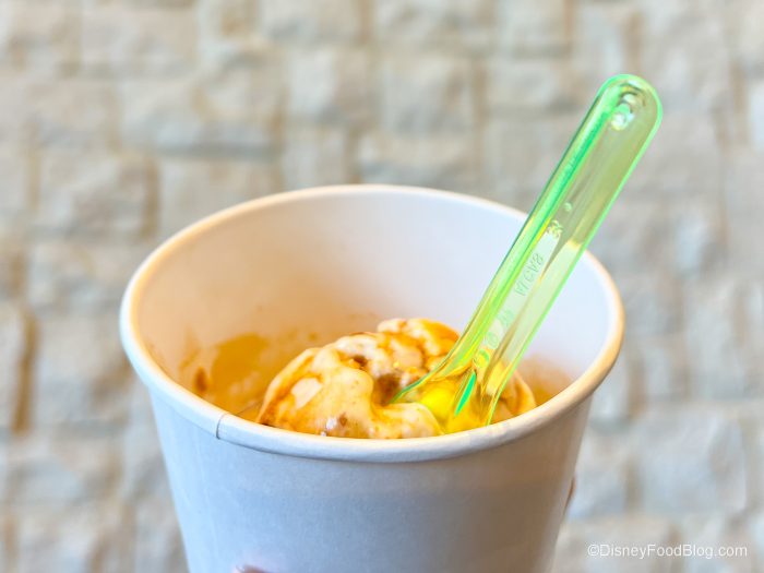 We ended up eating the gelato and then drinking the espresso to get the flavors together. That being said, it was pretty good, and the gelato itself was rich with a caramelized sweet flavor. It also has a bit of a crunch, so we think there’s something like a Biscoff in there.