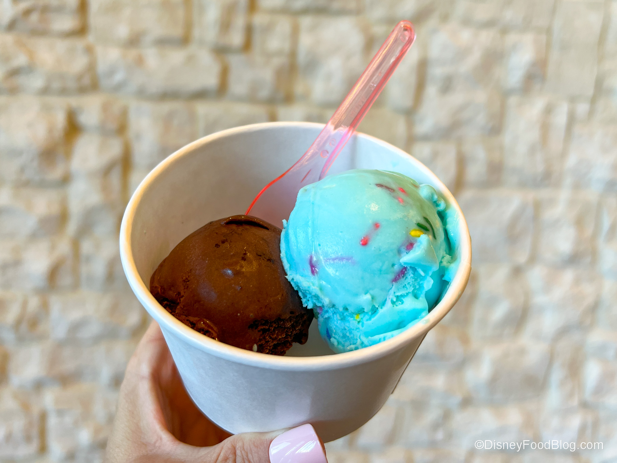 Our other scoop was the Birthday Cake Gelato, which is going to please kids with its fun blue color with sprinkles. This one had that nice cake batter flavor, and it was SO tasty and SUPER creamy.