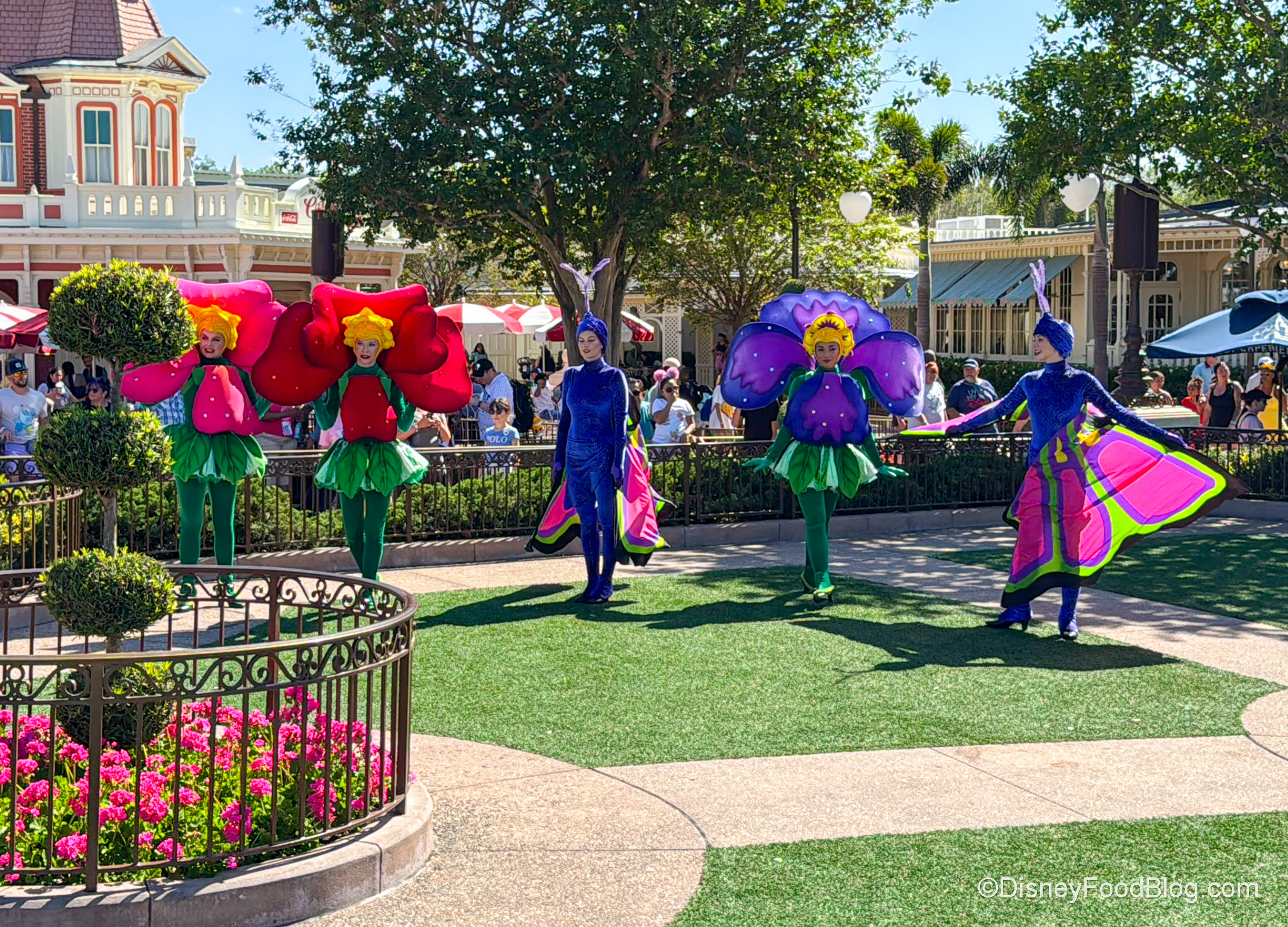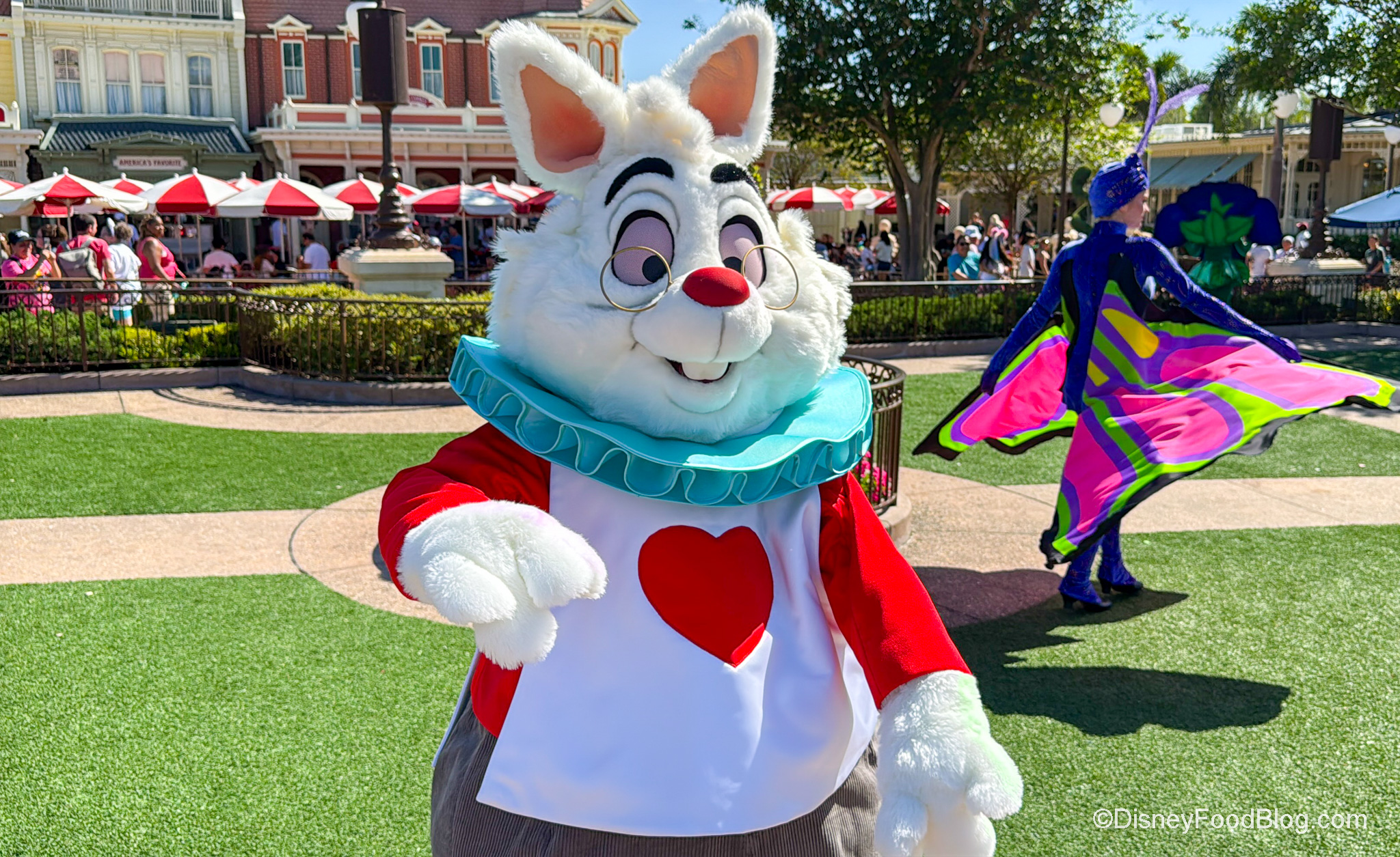 We stumbled on the MOST delightful character surprise EVER around the hub. We spotted the White Rabbit, along with some flowers and butterflies from Alice in Wonderland. They were all around the hub, and it was MAGIC.