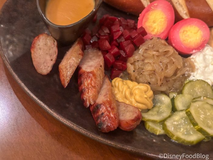 We also grabbed the Alchemist’s Platter for $27.99. This platter contains smoked sausage, potato & cheese pierogies, marinated beets, pickled egg, caramelized onions, warm pretzel, German mustard, and cheese fondue.
