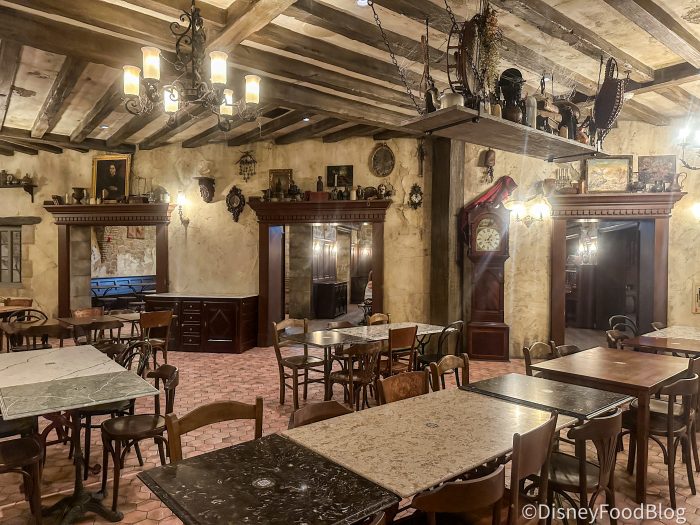 Place Cachée is a marketplace and is part of 1920s Wizarding Paris inside The Wizarding World of Harry Potter – Ministry of Magic. As you find yourself lurking about dark corners, with just a little luck, you’ll find Le Gobelet Noir located “In the shadowy corners of Place Cachée, where international Dark witches and wizards gather to escape the prying eyes of the Paris Ministry and have a hearty meal over hushed conversation.”