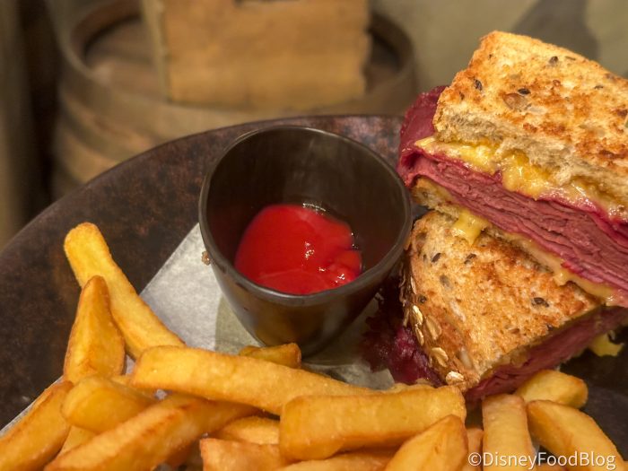 For our choice of side, we opted for the tavern fries, which weren’t anything special for the meal. They were a solid side for a sandwich, being that they were lightly tossed in salt and thicker-cut fries, but we’ve had these fries at several places around Epic Universe, so they’re not hard to come by.