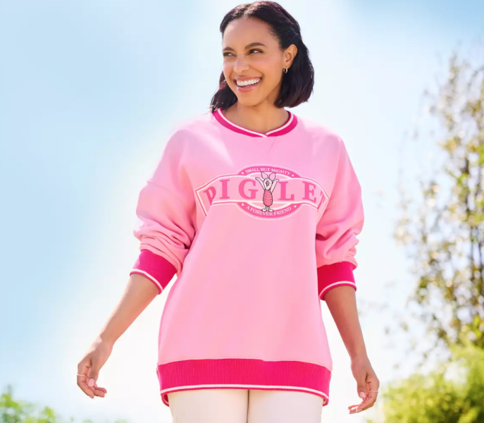 It’s pink! It’s Piglet! It’s the hottest new sweatshirt on the Disney Store website! Seriously — do yourself a favor and add this to your cart before it sells out.
