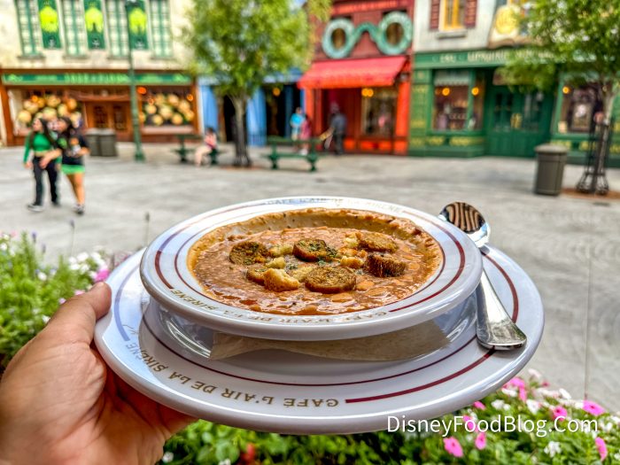 It was buttery and flaky, but had no dairy! Our reporter will be stopping by to mobile order one every time they’re in the park to grab this simple snack. It also paired beautifully with the cassoulet! Pro tip — dip it in the cassoulet and eat them together!