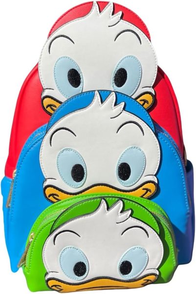 Okay, this one’s pure nostalgia. The Huey, Dewey, and Louie design stacked on top of each other is such a fun look, and the colors pop in all the right ways. It also has three zippers, plus side pockets, and the Scrooge McDuck charm is chef’s kiss. If you’re into old-school Disney or looking for a Loungefly that leans more playful, this is it.