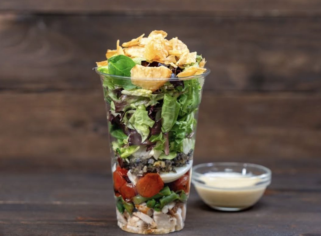 For something smaller, the Chicken Niçoise Shaker Salad will be at Edelweiss Snacks. Grab this if mixed greens, grilled chicken, hard-boiled eggs, green beans, cherry tomatoes, olive tapenade, and potato chips served with honey mustard dressing sound good to you!
