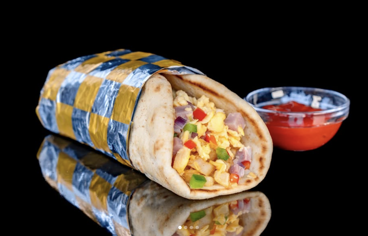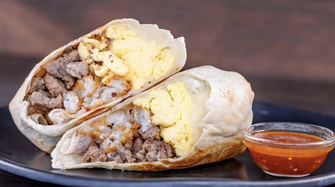 The final breakfast item on the list is the Denver Breakfast Shawarma from Shawarma Palace. Inside, you’ll find scrambled eggs, potatoes, ham, cheddar cheese, and bell peppers served with spicy ketchup.