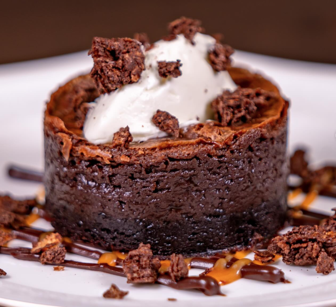 …and the Chocolate Gooey Brownie Cake made of chocolate brownie molten cake, chantilly cream, caramel, and chocolate sauce garnished with chocolate rice crisp will be waiting for you at Plaza Inn.