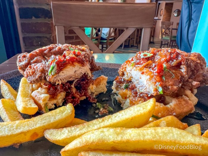 The waffle was dry as well, which made it pair well with the chicken. While it might not be the best chicken and waffles we’ve ever had, if you’re looking for a filling meal that includes fries and syrup, this might be the dish for you. If you love dishes that blend sweet and savory flavors, grab these chicken and waffles.