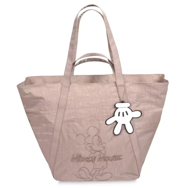 This large heavyweight coated canvas tote features embroidered Mickey Mouse art ,updating his classic bashful pose. The roomy bag sports a zip closure, several pockets, and a simulated leather tag in the shape of Mickey’s glove.