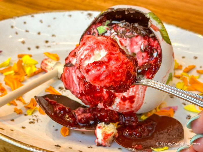 We really didn’t want to eat this thing because of how gorgeous it is! This is pricey, so we can see it being for more of a special occasion, but it truly did take our breath away with those hand painted details.