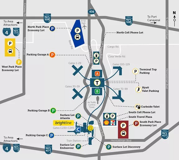 - If Garage C is full, your next closest option is the South Park Place Economy Lot. There’s a shuttle that’ll get you to Terminal C, but once you’re dropped off, it’s still a 13-minute walk to the Brightline station. That’s fine if you packed light, less fine if you’ve got kids, strollers, and Mickey-shaped everything.