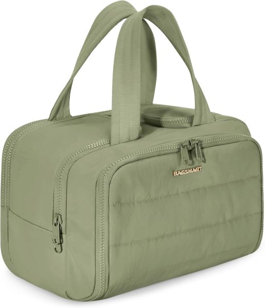 The BAGSMART Travel Toiletry Bag is available in nine different colors on Amazon and includes several pockets and pouches that help keep your makeup and toiletries organized. The bag is easy to travel with and provides ample interior space, making it easier than ever to travel with your necessities.