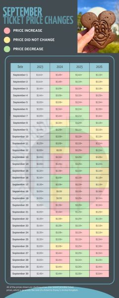 So far, Disney has only released pricing information through October, but we will update this post when November and December are added. However, we did want to include a look at the prices from previous years, so you have an idea of what you might expect.