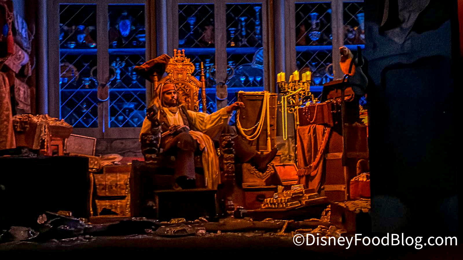 Above the fireplace are five miniature ships in a bottle representing pirates from different parts of the world, but “these mysterious bottles have been known to come alive and engage in a fearsome battle.” This reminds us of Trader Sam’s, where the whole room becomes interactive with different moving elements and sounds if you order a special drink.