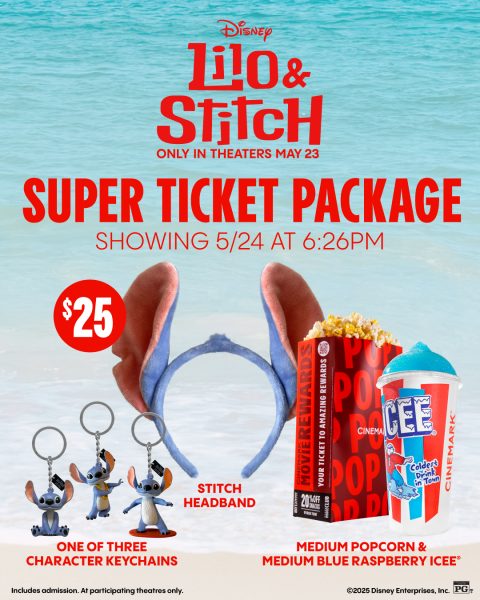 Lastly, Cinemark is offering what they call the Super Ticket Package. For just $25, you will get a ticket for the movie, one of three Stitch character keychains, Stitch ears, a medium popcorn, AND a medium blue raspberry icee. Now that’s what we call a fan deal! We wouldn’t miss out on this AMAZING offer!