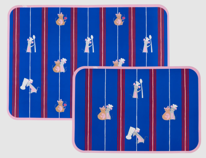 Whether you’re baking cookies or roasting veggies, these reusable baking mats (featuring Remy and Emile) will make your baking loads more fun. The set includes one quarter-size baking mat and one half-size baking mat, designed to fit the Little Sheet and Holy Sheet.
