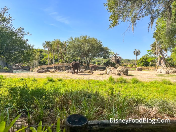This tour started by taking us backstage (behind the scenes in the parks), where we couldn’t snap any pictures. We spotted the 45 Kilimanjaro trucks used on the attraction before we started driving behind the ride itself! They gave us some cool insight (like that road behind is called Perimeter Road), and we got to see the animal barns (aka the animal enclosures).