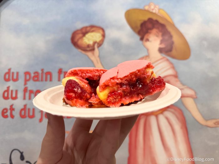 From the first bite, the raspberry filling absolutely dominated with an intense, almost sour flavor that had our lips puckering and our eyes squeezing shut. The cream inside doesn’t do much to mellow it out either — if anything, it only emphasizes that punchy tartness.