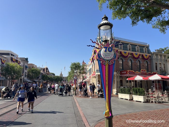 Disneyland’s 70th Anniversary celebration will kick off on May 16th, and we’re so excited for this one-of-a-kind party! We recently went to the park to look for updates, and to our surprise, the decorations are already up all around the resort. From Main Street, U.S.A. to the hub to Sleeping Beauty Castle — the park is dazzling with new decor!