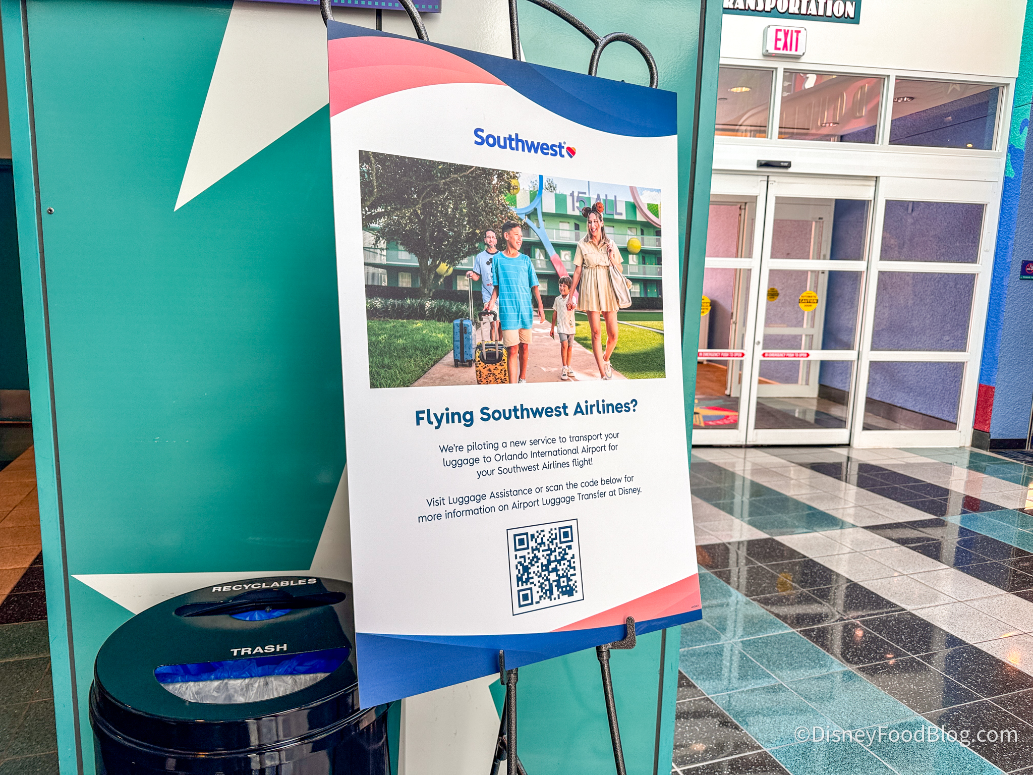 A new perk has recently begun testing at the Disney World Value Resorts — luggage transfers with Southwest Airlines. For those flying home from Disney World with Southwest and staying at the All-Stars, Pop Century, or Art of Animation, you can visit luggage services at your hotel to drop off your bags…and then pick them up at baggage claim when you get home!