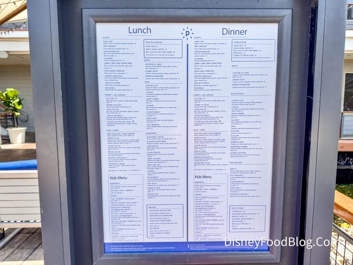 For both lunch and dinner, you can find starters, chilled and raw seafood, soups and salads, plus pasta and main entrees. Don’t forget about the steamer options as well!