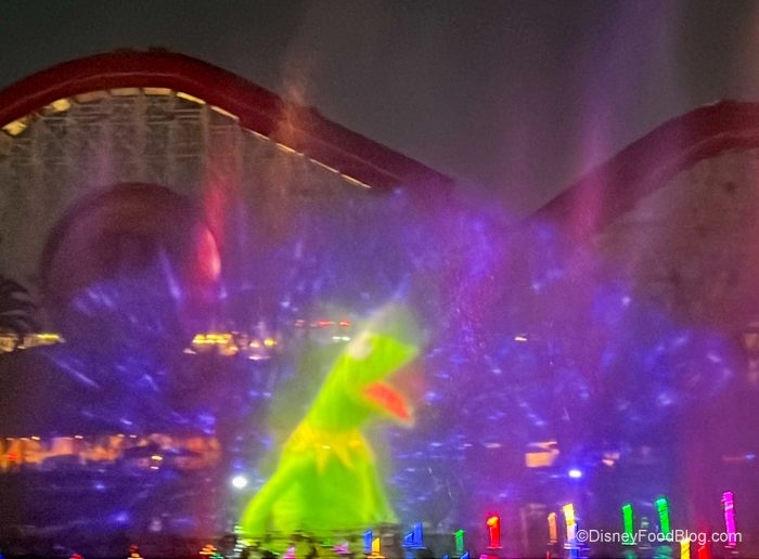 We can’t forget one of the best parts though — there’s a Muppets pre-show! Kermit the Frog, Gonzo and other Muppet friends step into the spotlight to share safety information in a fun and silly song-and-dance number projected across the World of Color fountains.