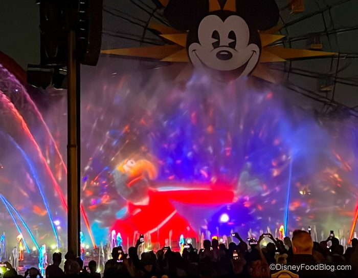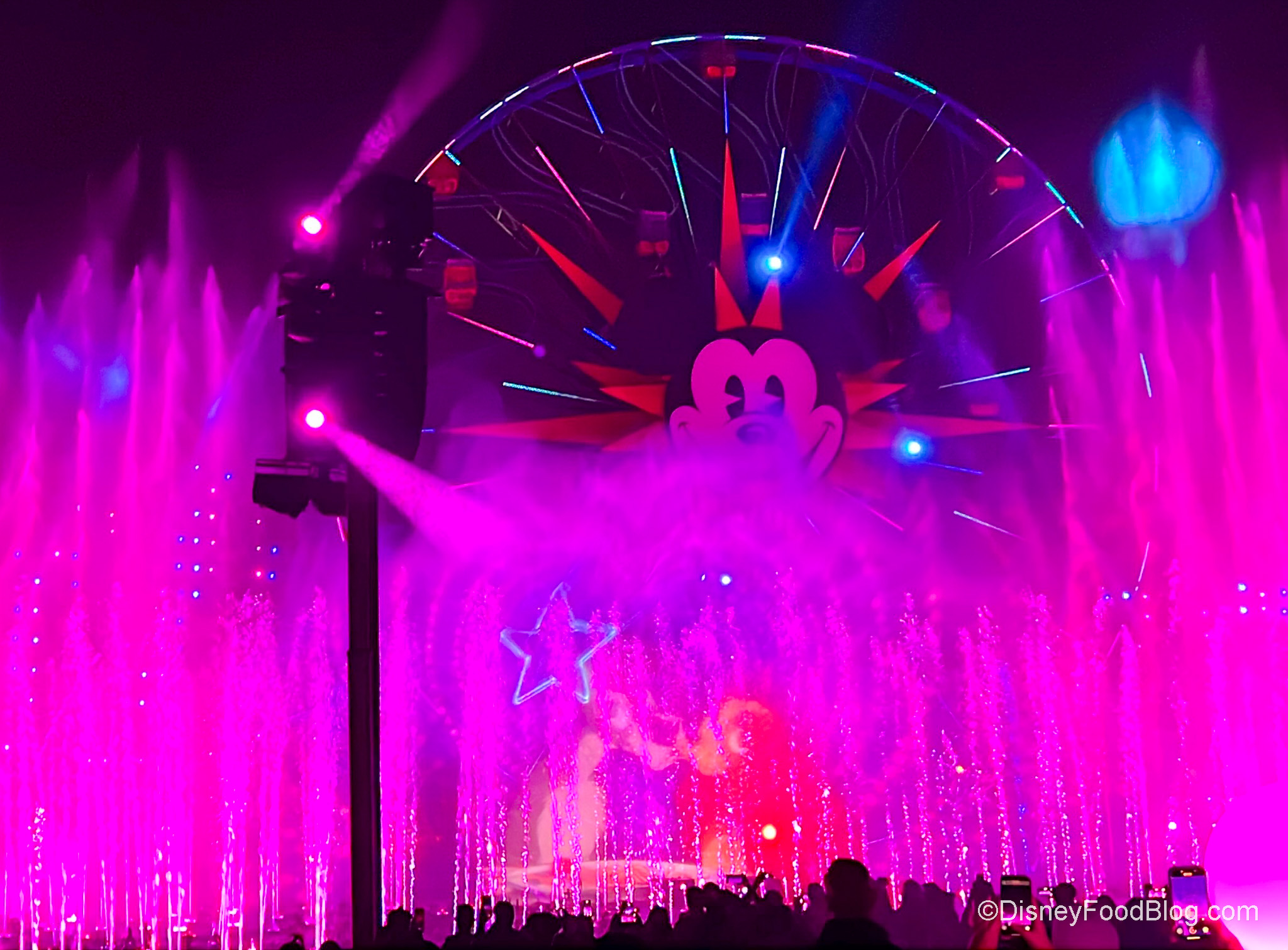 Disclosure: In nearly all circumstances, Disney Food Blog writers and photographers pay full price for their own travel, hotel, food, beverage, and event tickets. We do this because it’s important to us as journalists to ensure not only that we give you unbiased opinions, but also that you can trust us to do so since we’re paying our own way. On rare occasions, when we are invited by a company to attend a preview as media, and when we choose to accept that invitation, we will always make you, our readers, aware of that situation. Today, we were invited by Disneyland to attend their media preview of World of Color Happiness!. Note that when we attend events as media we are 1) Not required to review that event/food on any of our channels, and 2) Not required to review that event/food favorably. You can always count on DFB to give you a 100% unbiased and honest review of any event that we attend, food that we eat, or beverage that we drink. You can see more in our Disclosure Policy. Thank you for reading. — AJ