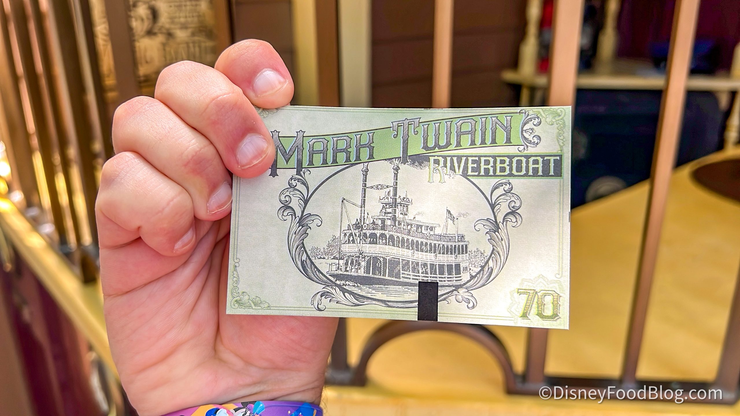 Tap your MagicBand+ on the touchpoint and you will receive a little ticket for your riverboat cruise.