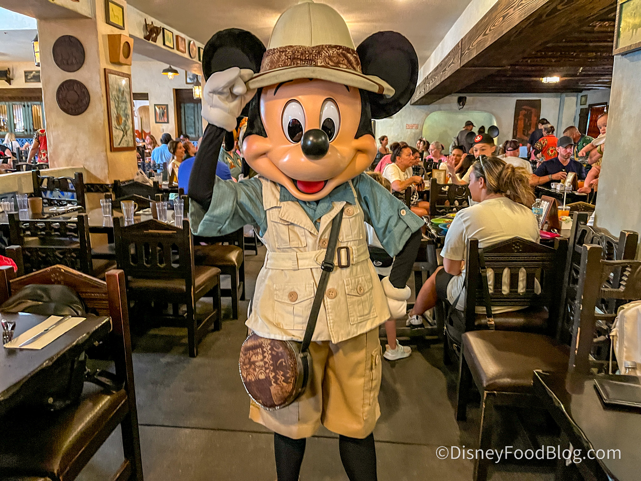 Tusker House is a character dining buffet in Animal Kingdom. During your meal, Donald Duck, Mickey Mouse, and other friends will visit your table and say “Jambo,” which means “hello” in Swahili. They’re dressed in their safari outfits to get you in the Animal Kingdom mood before you head on your own safari, visiting all the animals.