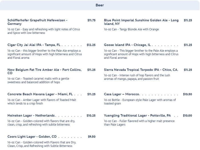 Or, if you are looking for something with some alcohol, you will find a variety of beer…