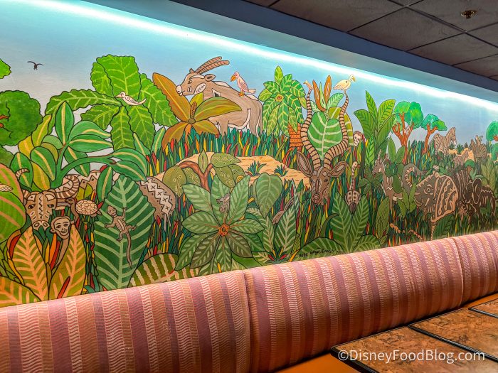 When you first walk in, you will be greeted by a tree mural of the acacia tree adorning the entrance, and you will also spot animal murals encompassing the walls behind the seating.