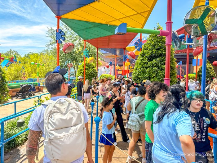 If you’re at Disney World during this scorcher, make sure you’re taking care of yourself! Take a lot of breaks when you can. Find air-conditioned areas and seek shade when walking around the park. Maybe wait to ride those rides that have long lines in the sun — we’re looking at you Slinky Dog Dash!
