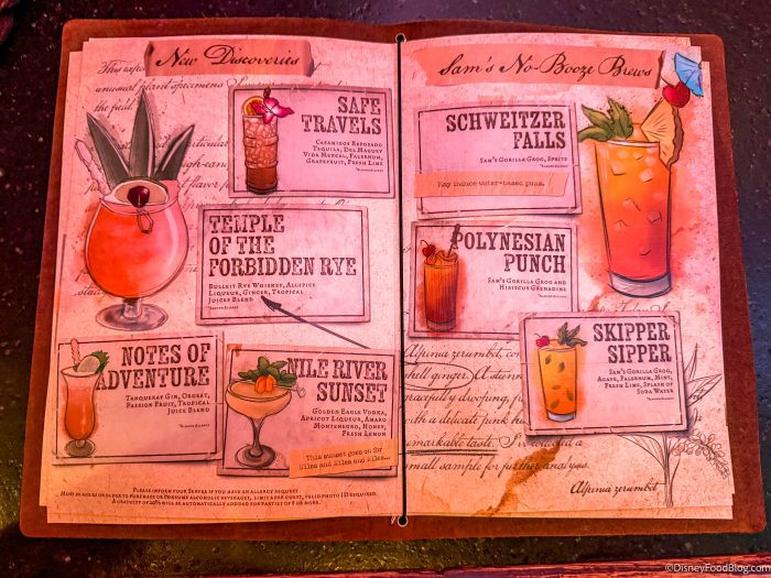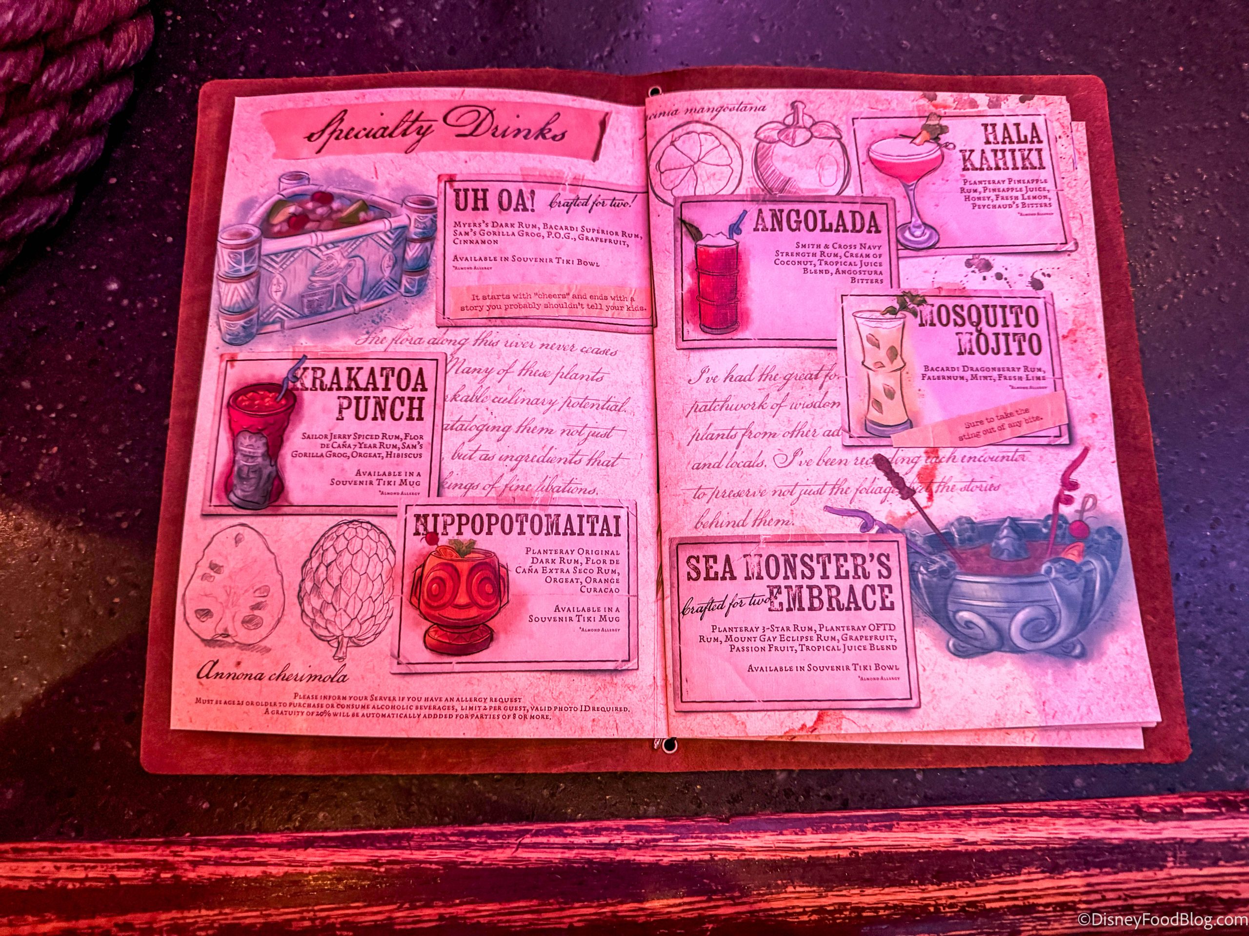 If you’re a fan of Disney lore, then you’ll notice that this restaurant and its menu features some ties to the S.E.A. (the Society of Explorers and Adventurers), Disney’s “secret society” that has roots in many popular attractions around the world.