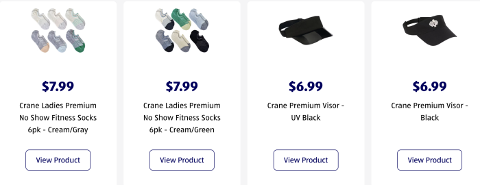 …cream and grey, as well as cream and green. Six pairs of socks for $7.99 is a great deal, especially considering how easy it is to lose socks when washing them (why is that?). We also wanted to show you these two visor hats from ALDI to help with sun protection.