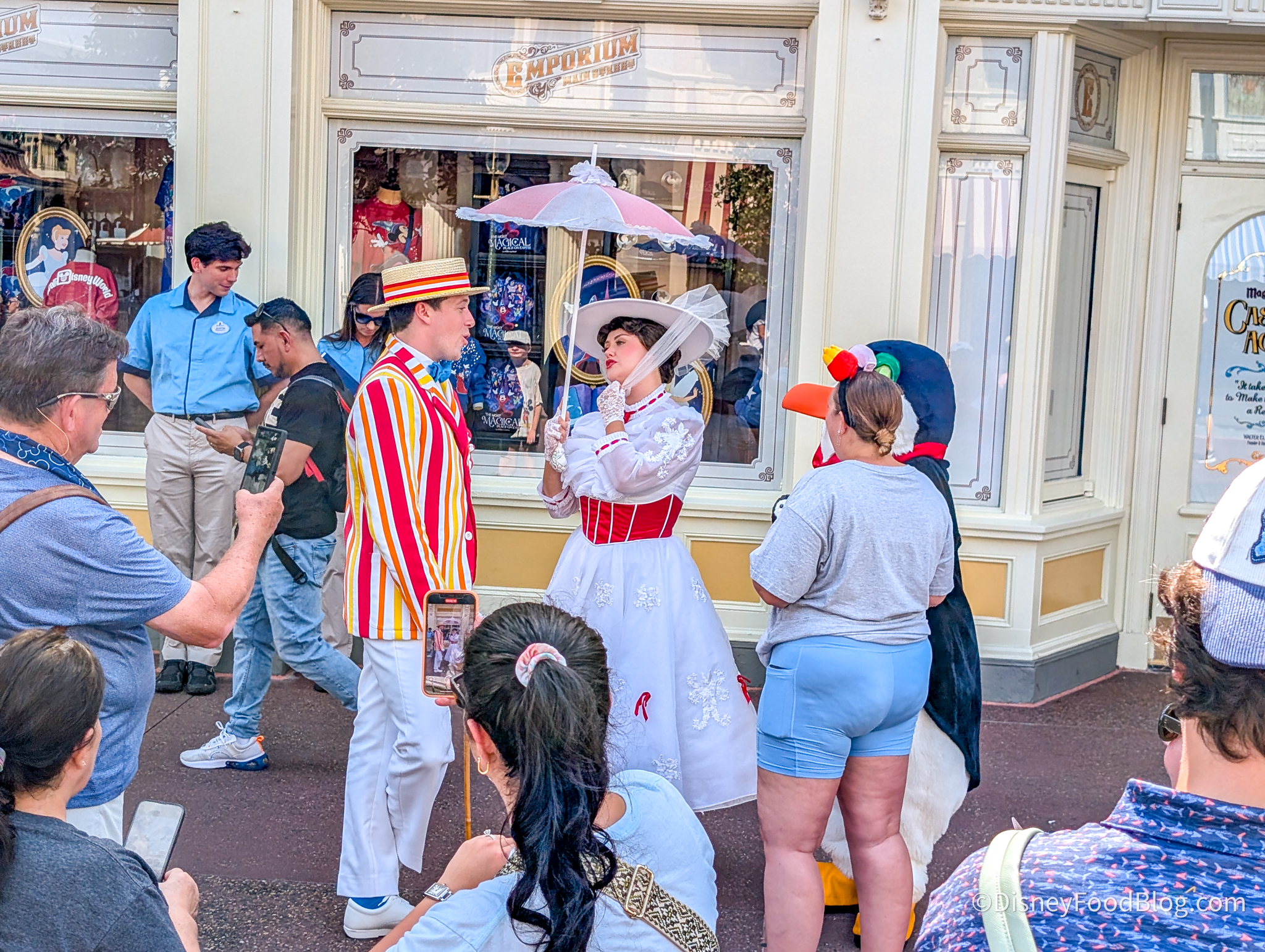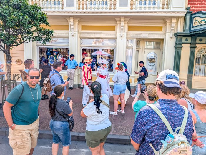 Recently, right around 4:15 PM, we spotted Mary Poppins, Bert, and a Penguin meeting guests in a surprise pop-up meet-and-greet on Main Street, U.S.A.!