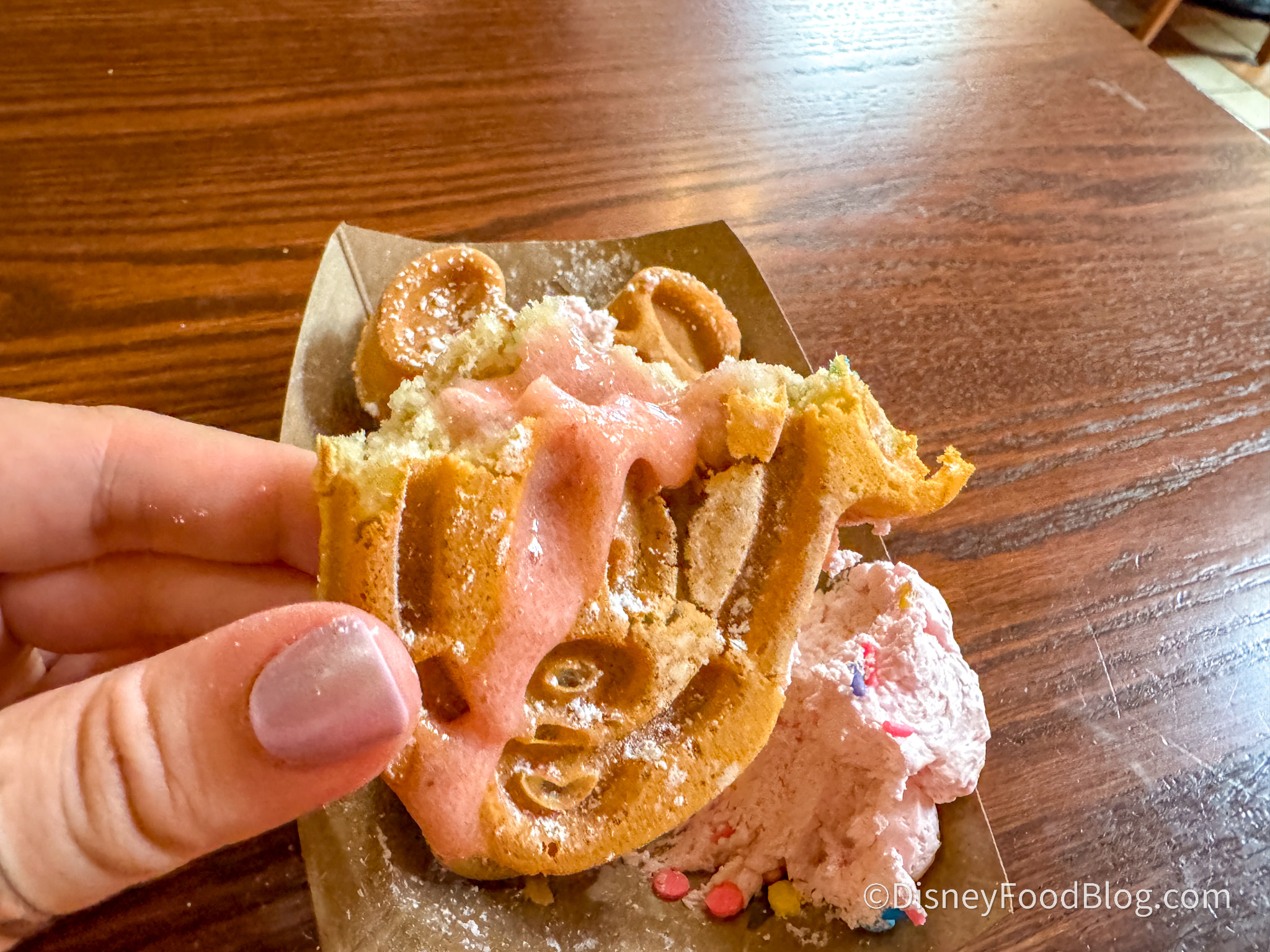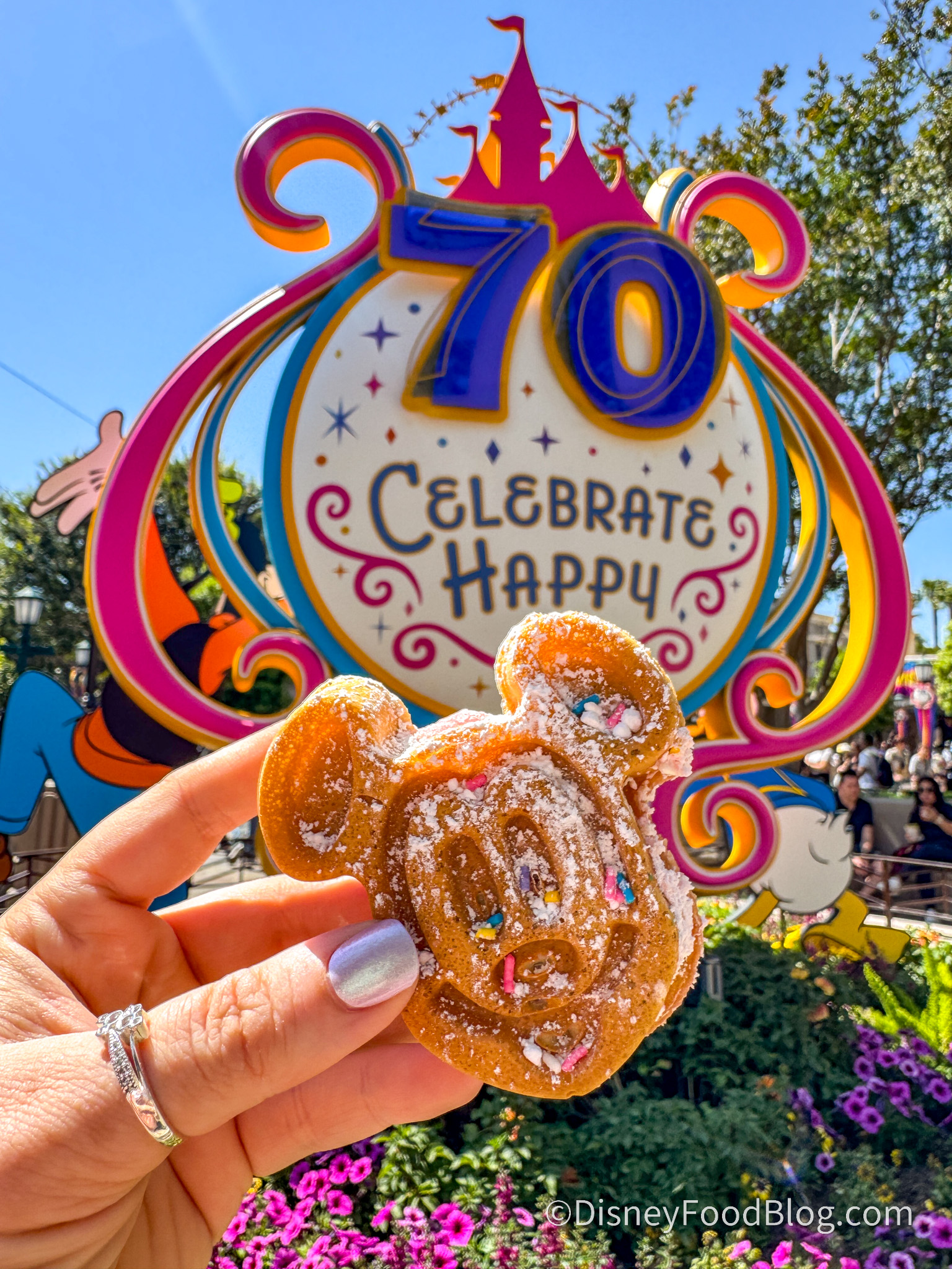 Mickey waffles are always one of our favorite things to try, and while it might just be for the nostalgia, it’s also because Mickey-shaped food is a building block of a Disney Park. We’re so glad this lived up to the hype! When we’re ready for another quick breakfast, there are a lot of 70th snacks to try (well over 70, by the way), so this is an incredible way to start off the day and still have room for plenty more snacks.